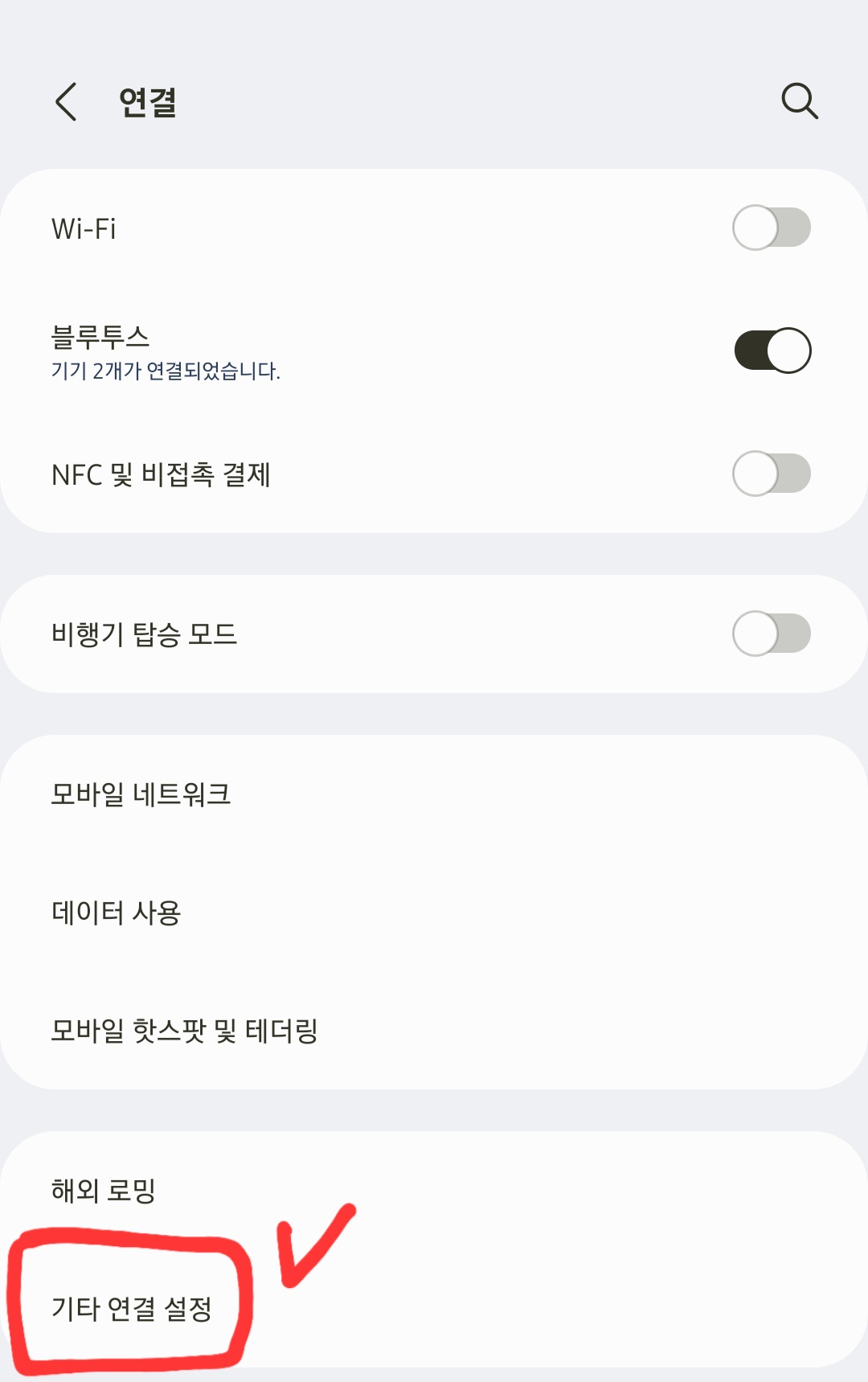 휴대폰 [설정] → [연결]